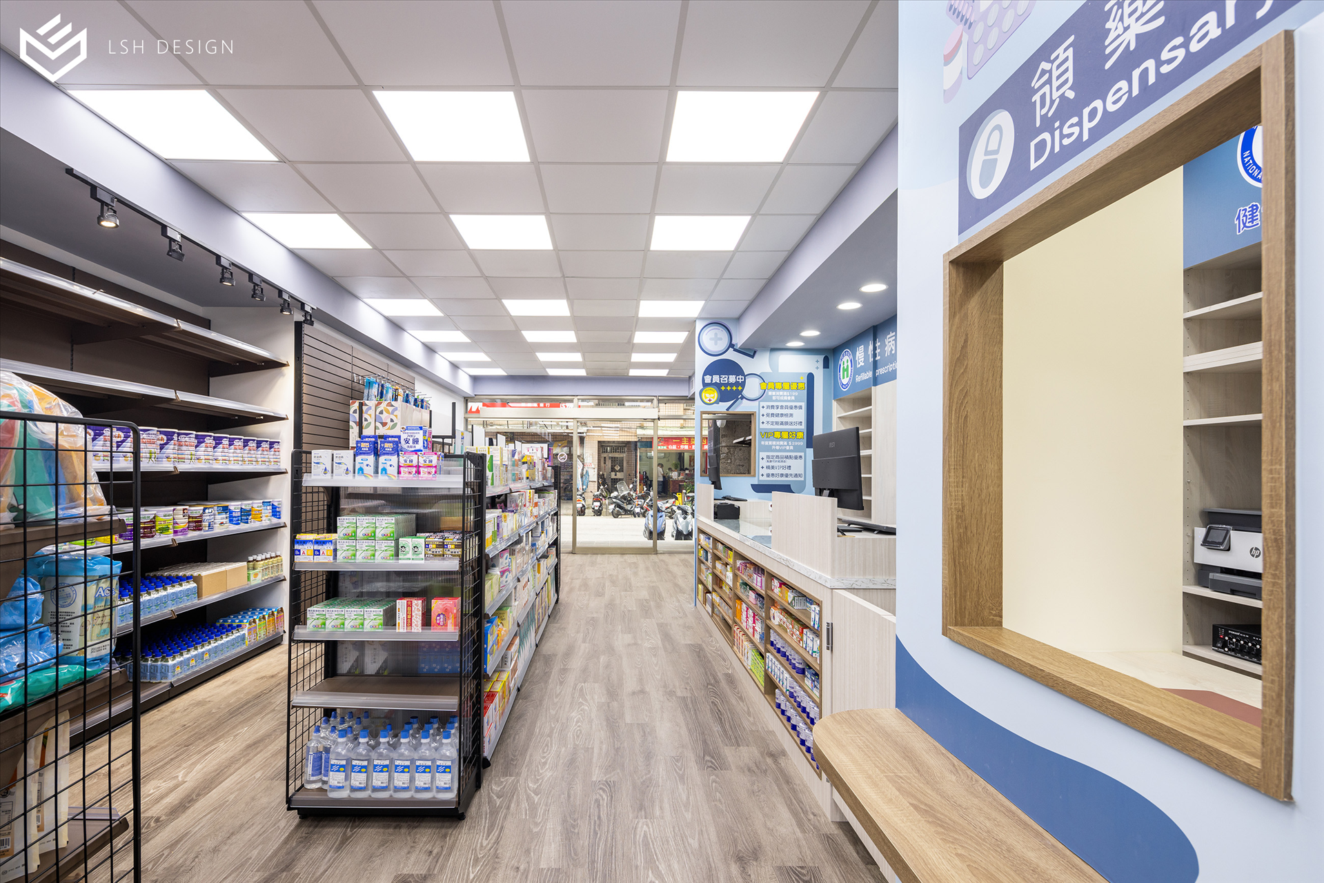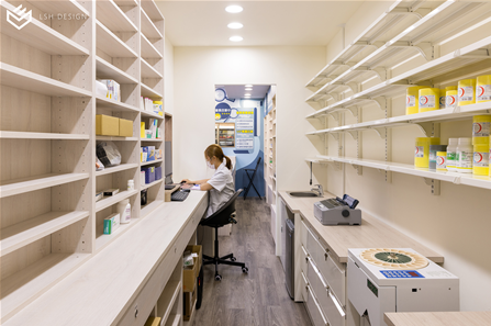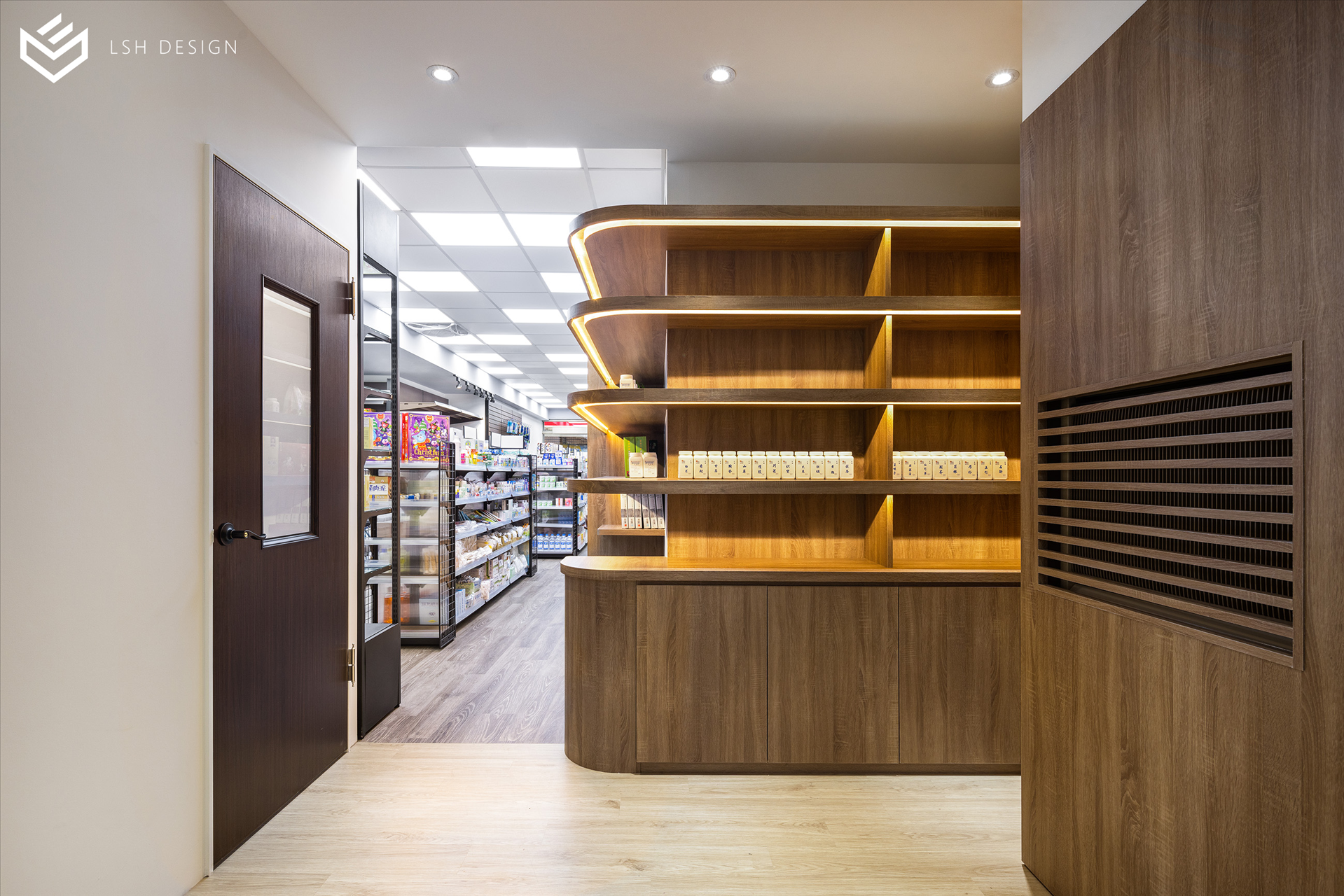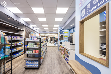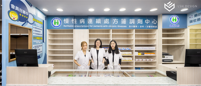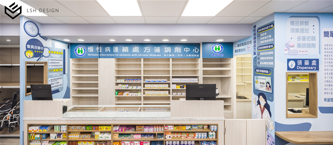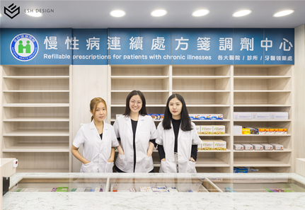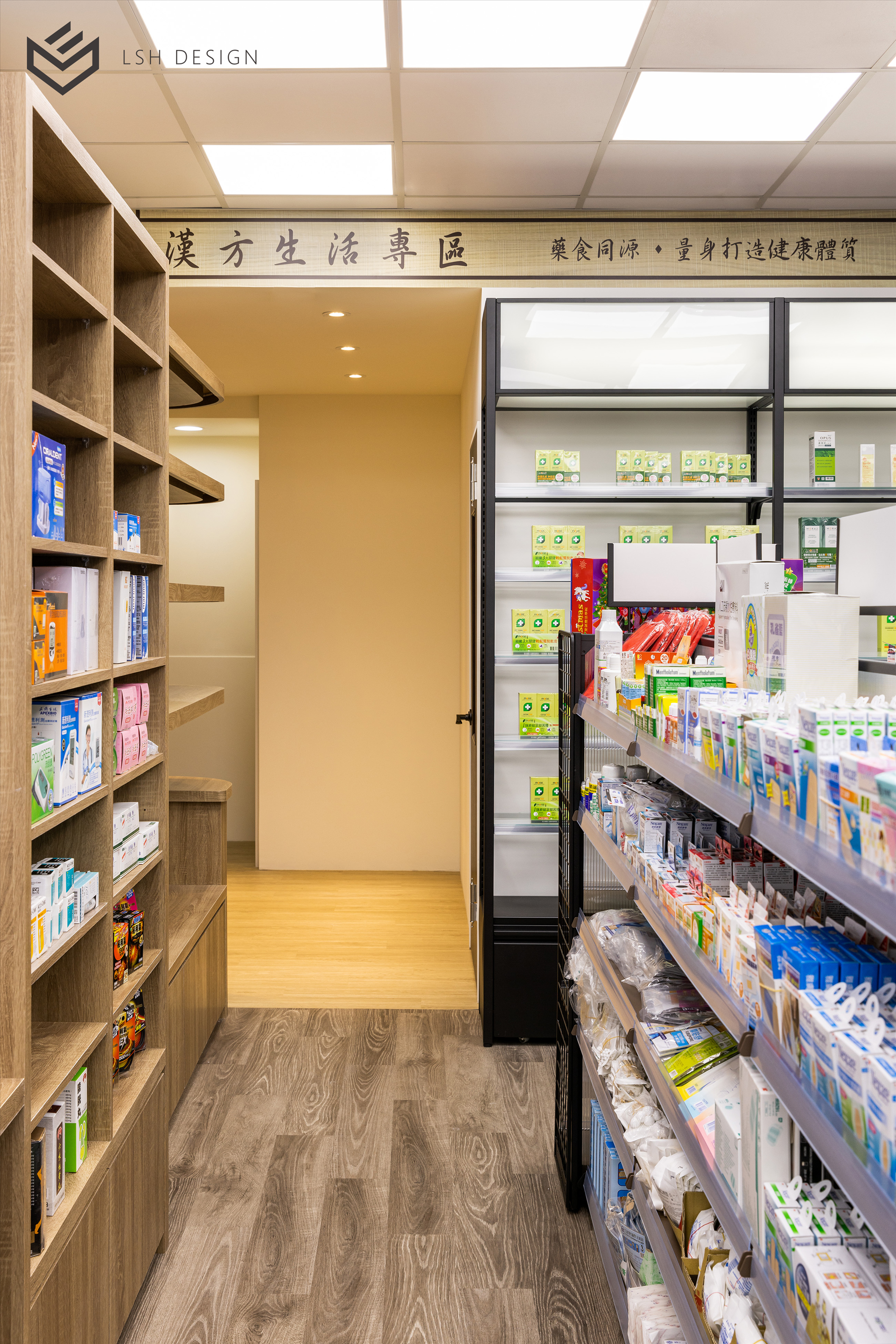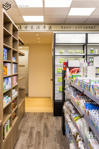 後段則是改變傳統中藥區域的刻板影響,選擇穩重的木皮色,減去空間泛黃感。