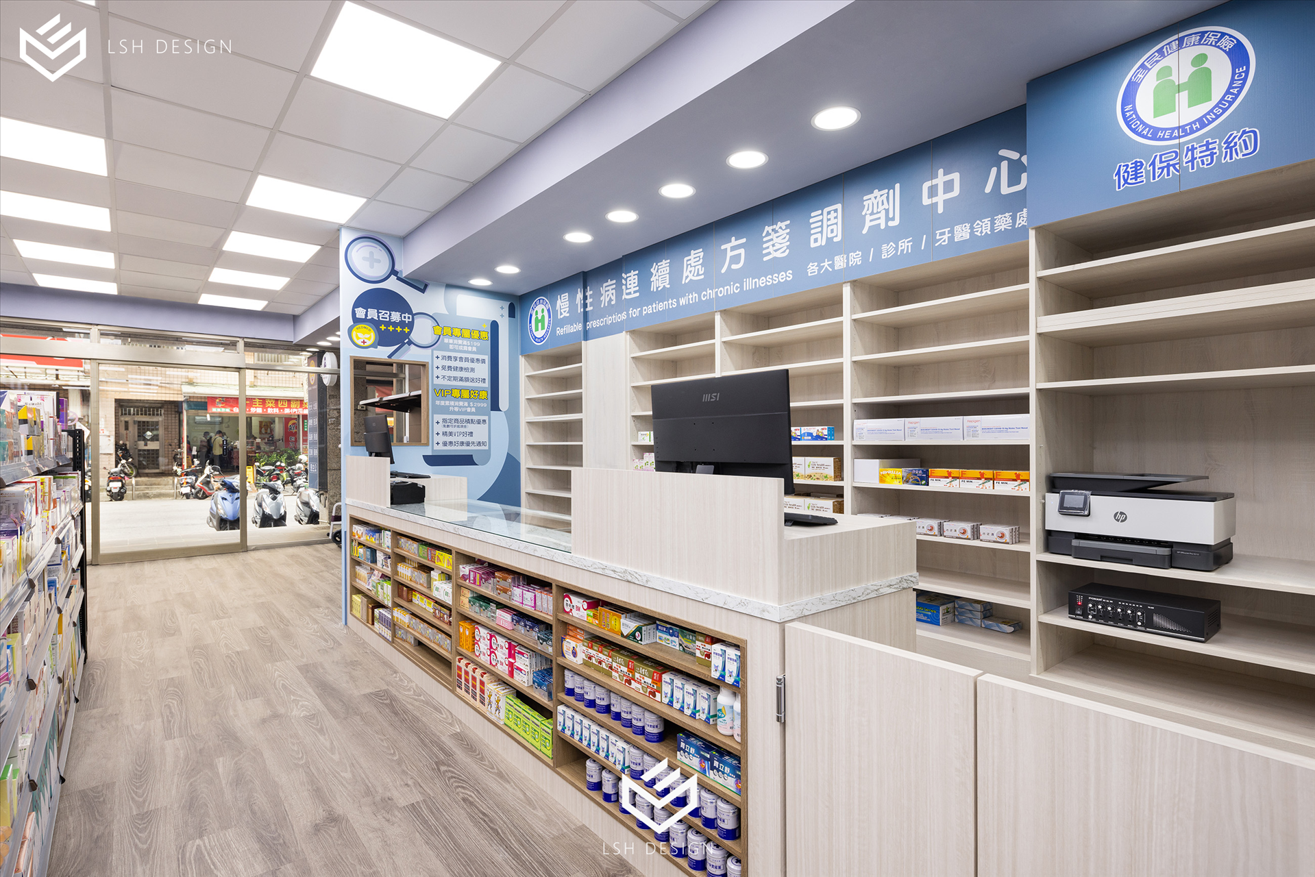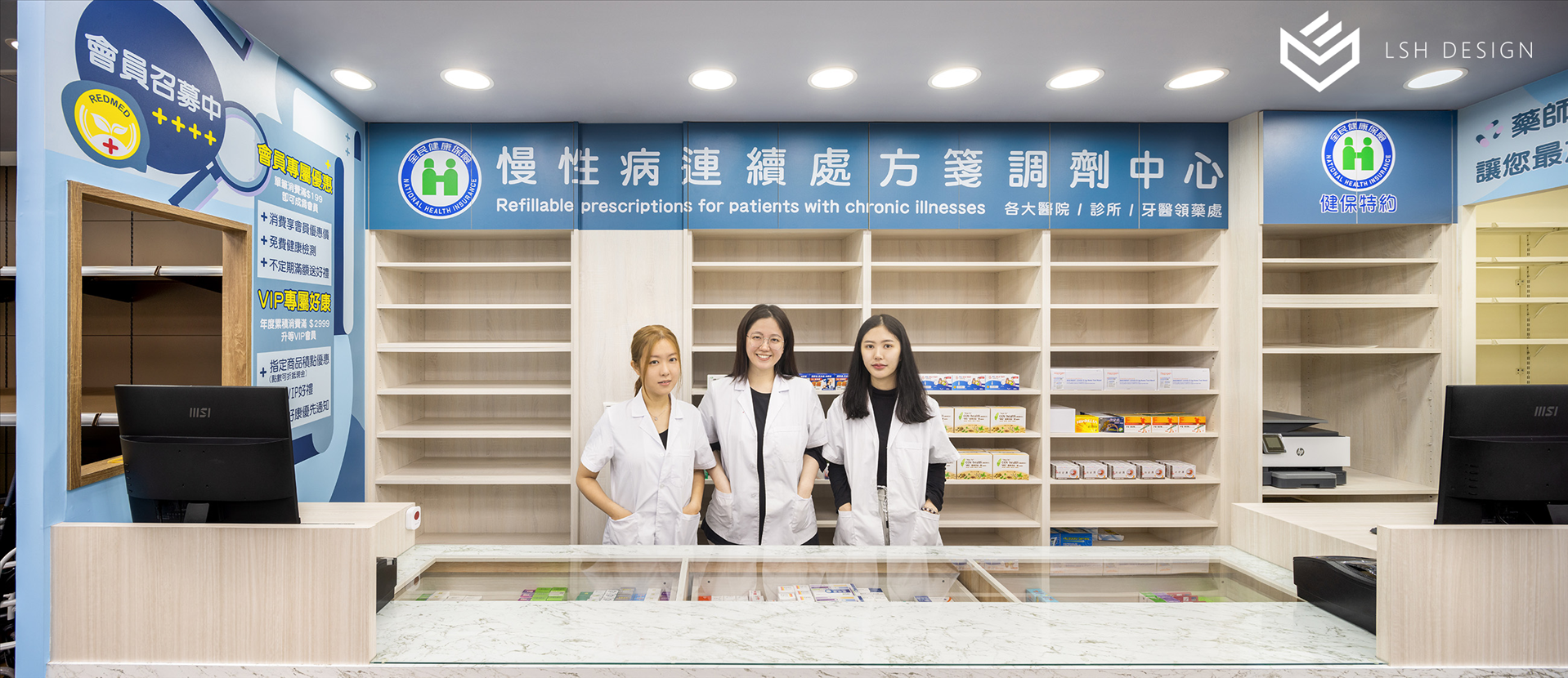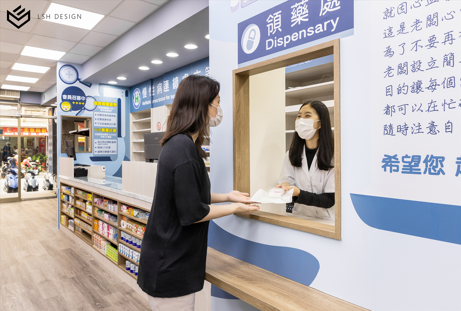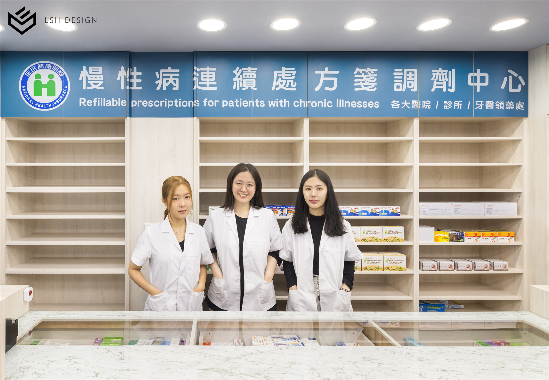 後段則是改變傳統中藥區域的刻板影響,選擇穩重的木皮色,減去空間泛黃感。