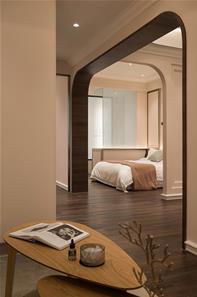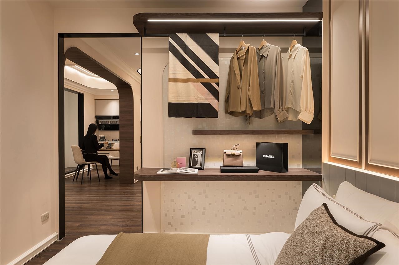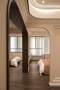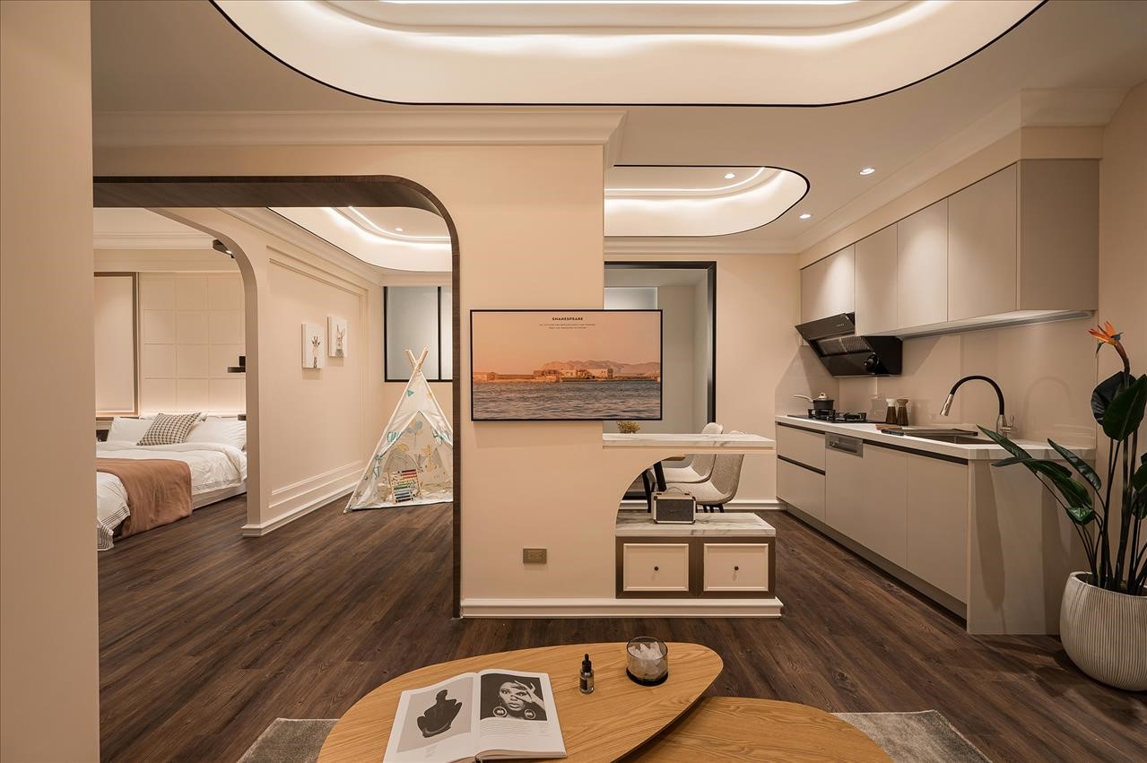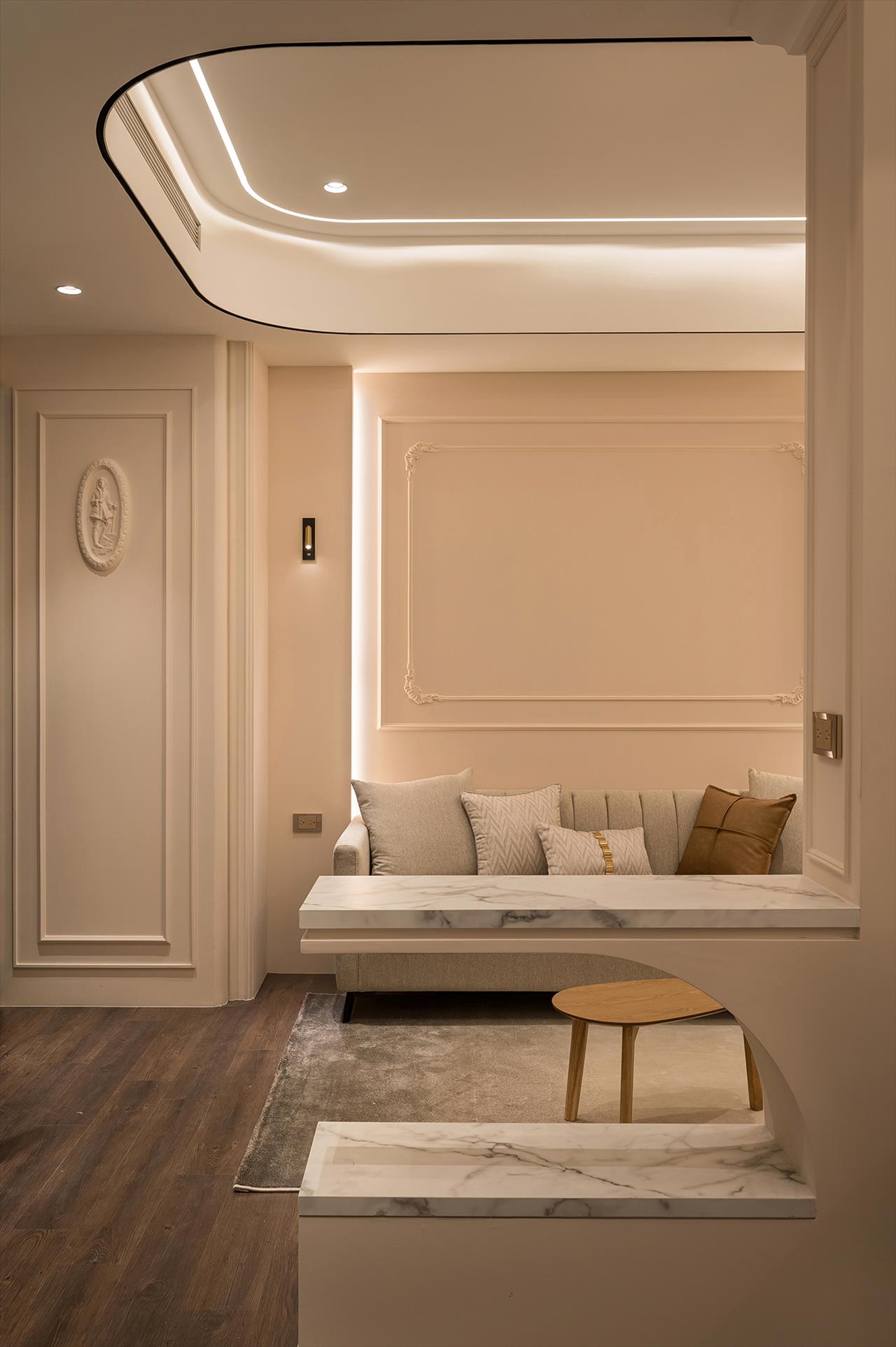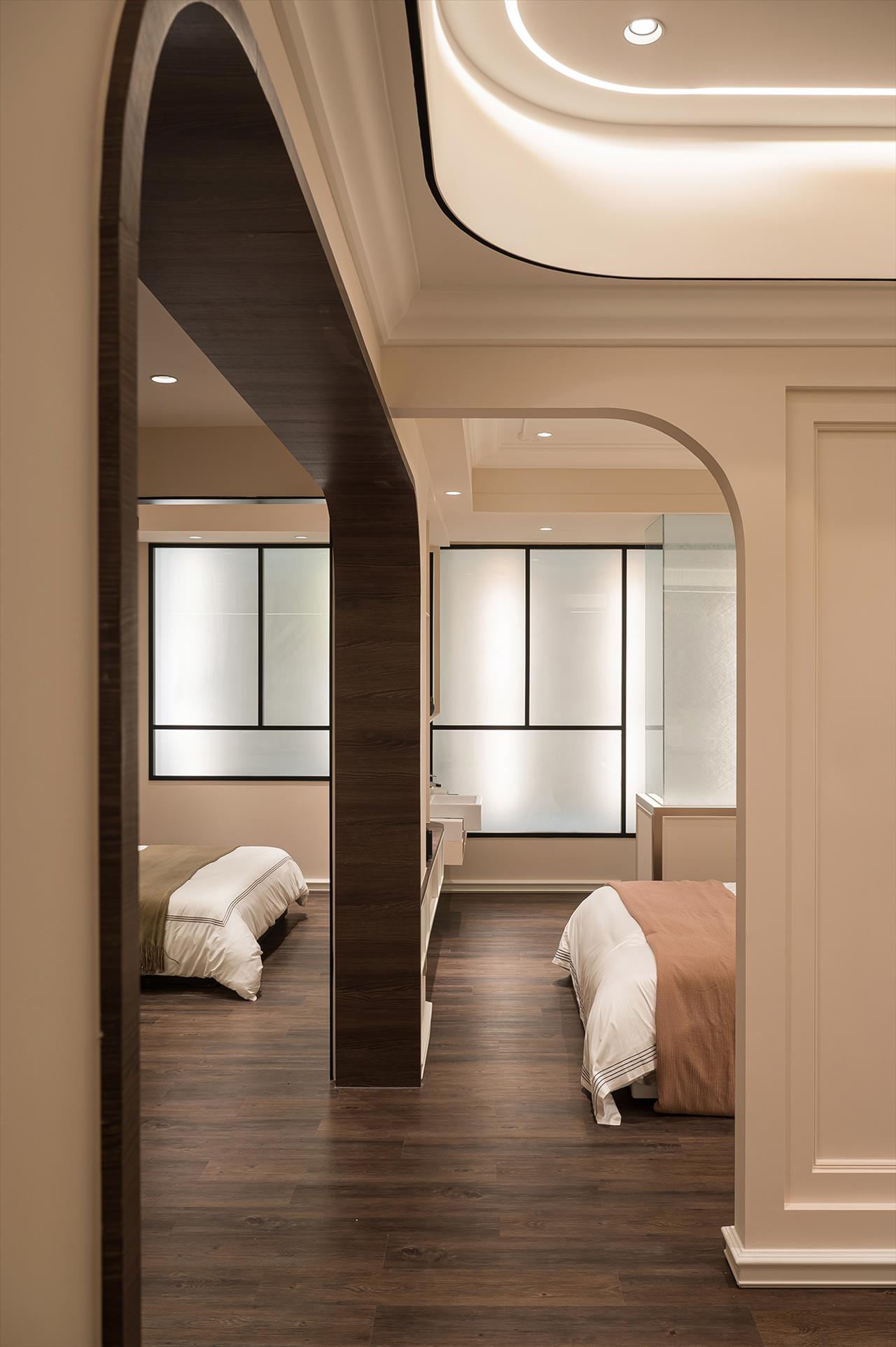 並在同時帶入優雅的感覺,使空間呈現在每個區域做串連 讓視覺達到平衡,圓弧拱的呈現同時串聯公私領域