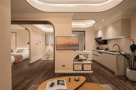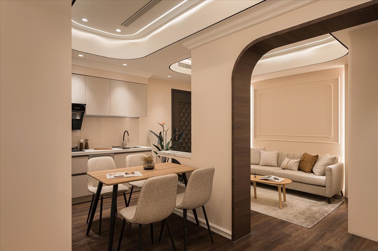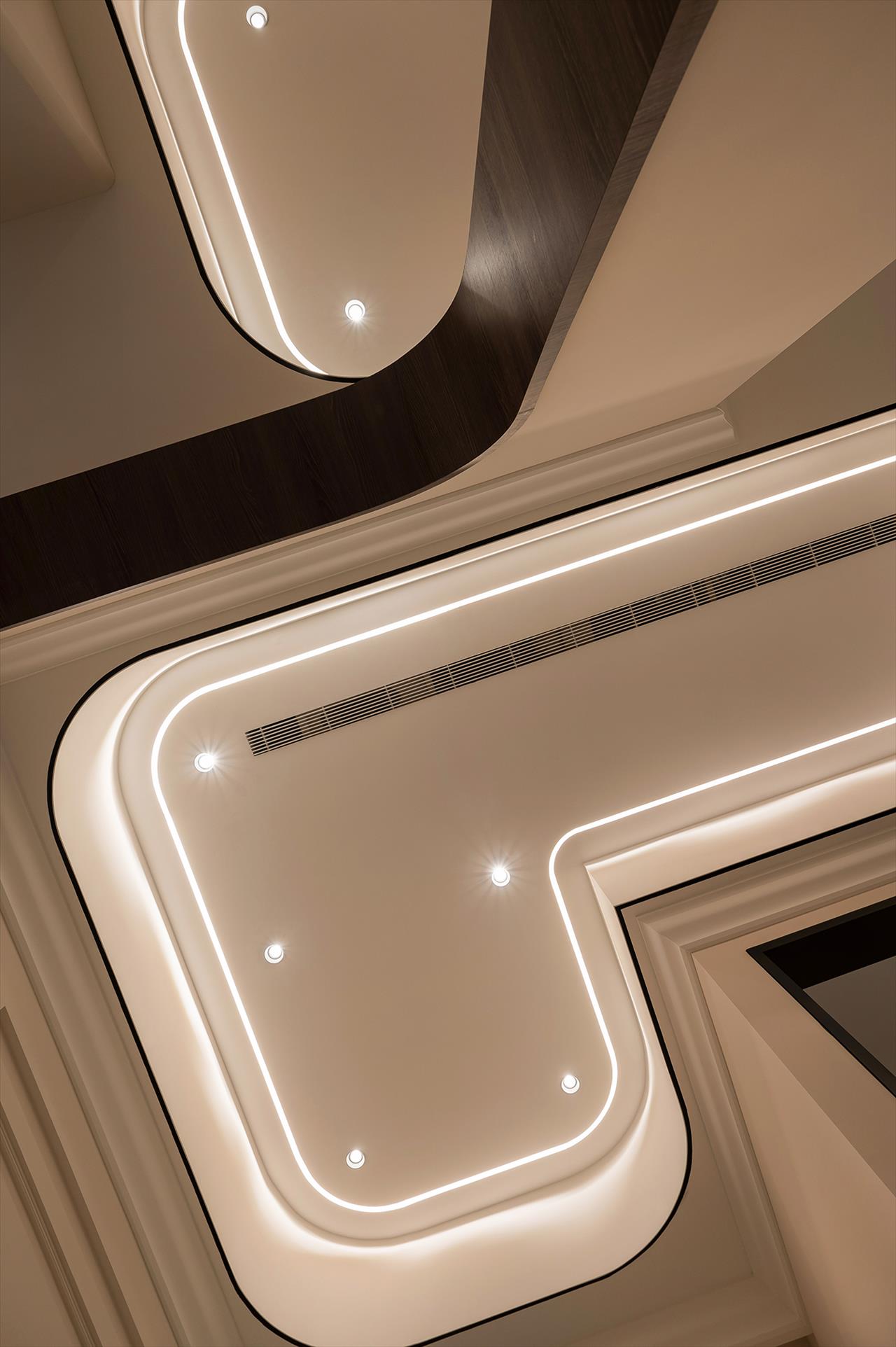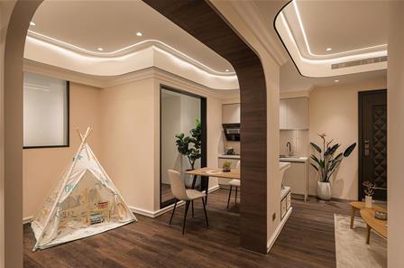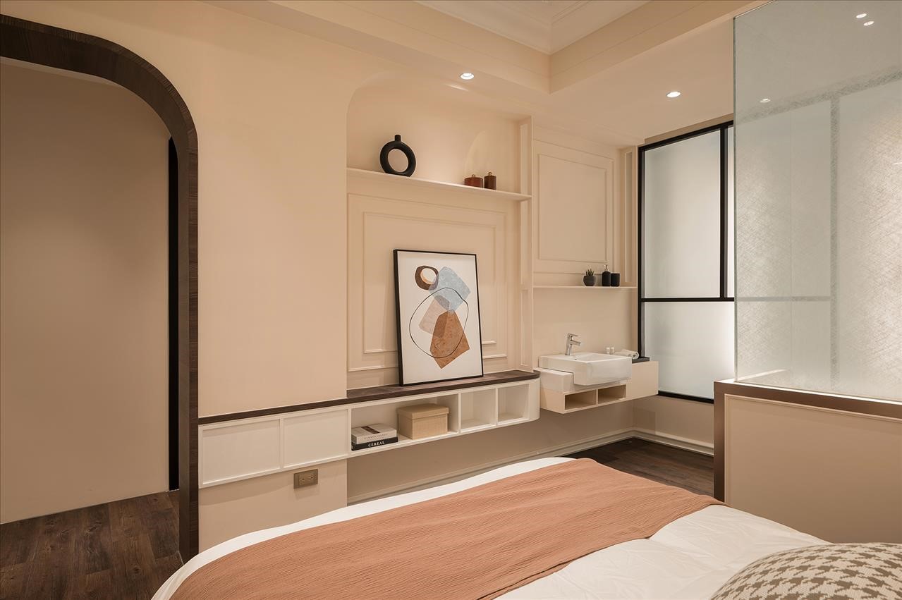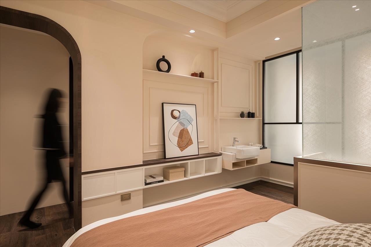 並在同時帶入優雅的感覺,使空間呈現在每個區域做串連 讓視覺達到平衡,圓弧拱的呈現同時串聯公私領域