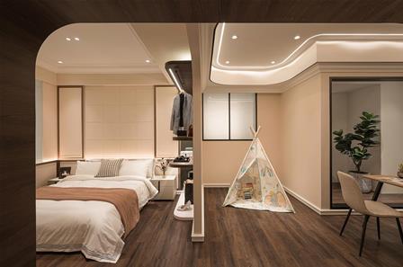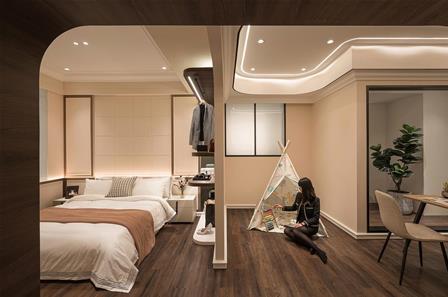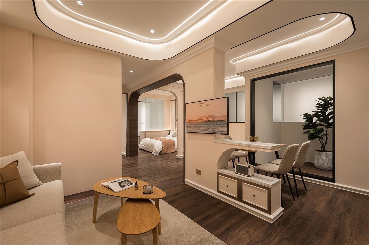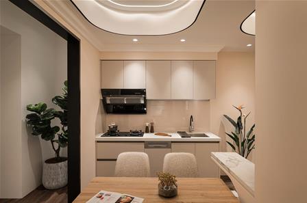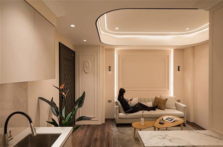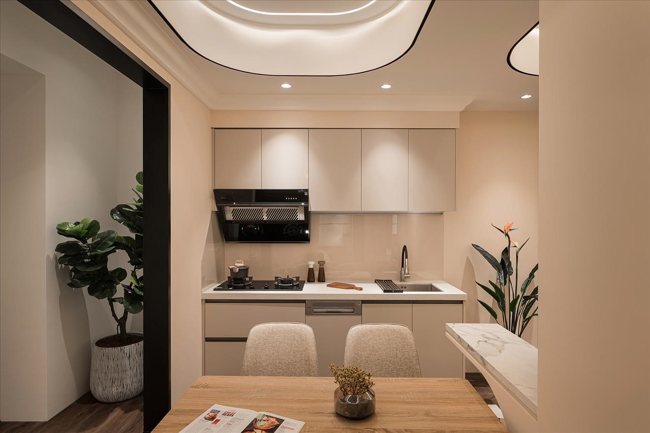 降低空間配色的彩度,整體達到一個優雅且俐落複合式空間。