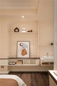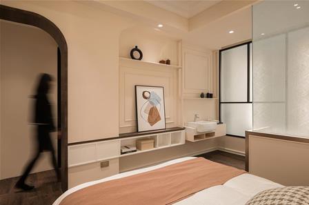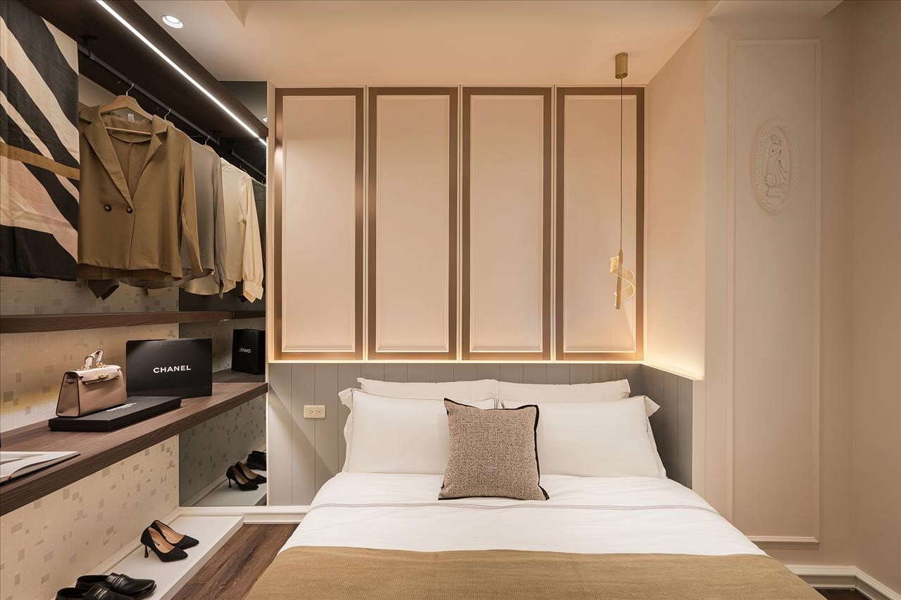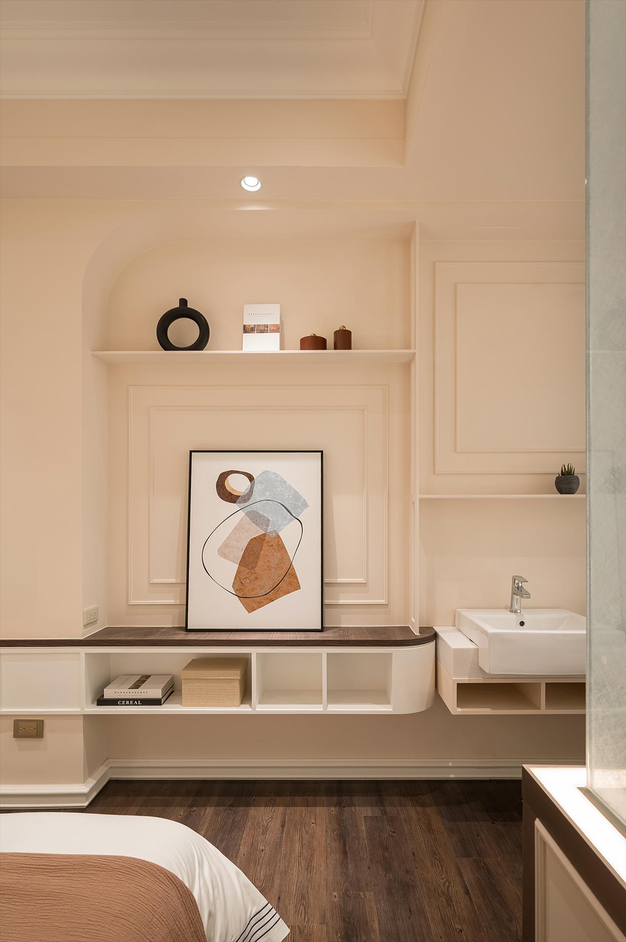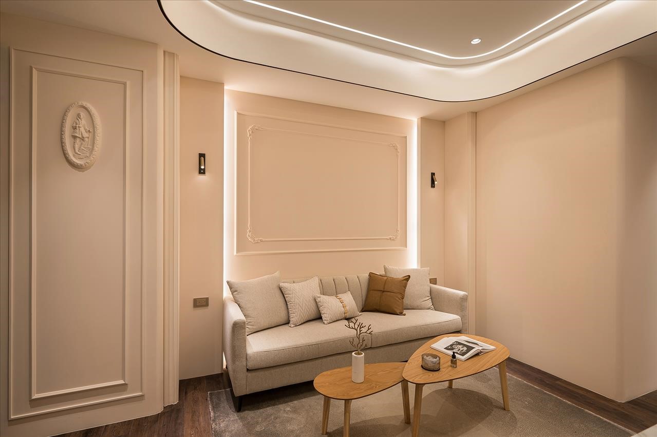 同時降低空間過度壅擠視覺感,以新美式方向前進,簡化了過度繁瑣線板選擇, 選用更為大氣的線條感做前進